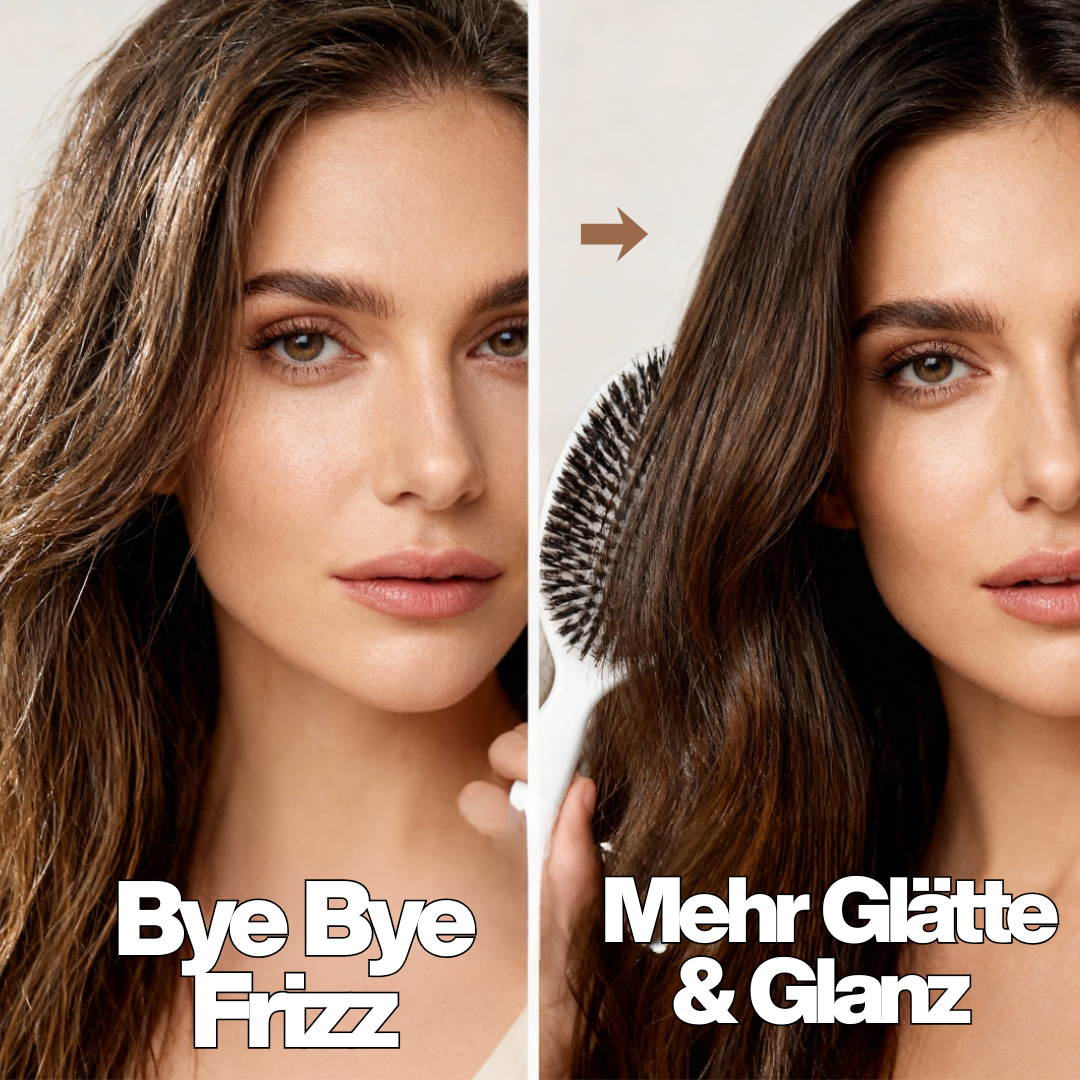 Diese Haarbürste nutzt das, was dein Haar bereits hat: seine natürlichen Öle. Die hochwertigen Wildschweinborsten nehmen das Sebum direkt an der Kopfhaut auf und verteilen es sanft bis in die Spitzen. Das Ergebnis: sichtbar gesünderes, glänzenderes Haar – ganz ohne zusätzliche Produkte.